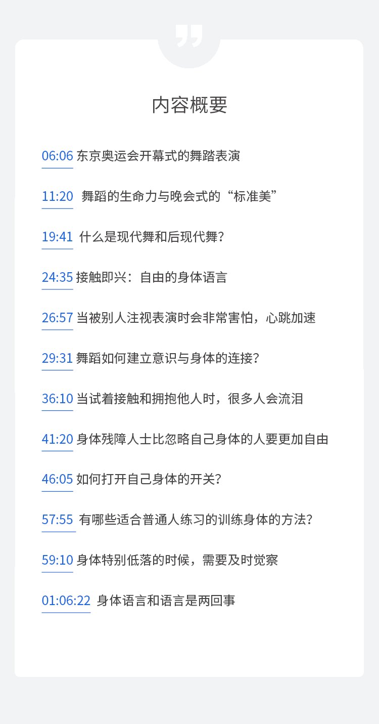 你对自己的身体满意吗?你平时会羞于用肢体来表达吗?除了健身、医美,平时我们普通人可以怎样塑造理想身体?本期播客我们邀请了《三联生活周刊》记者薛芃、“身身不息”创始人葛慧超和独立剧场导演、编舞王梦凡,一起聊聊舞蹈与身体之“美”,分享她们对理想身体的思考。