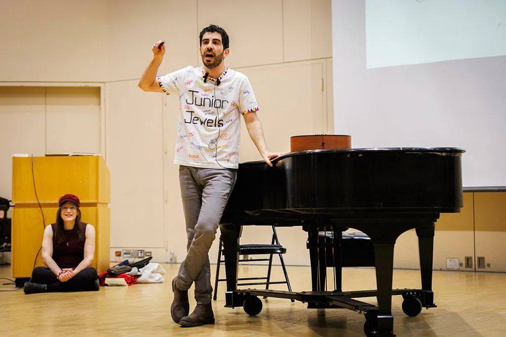 助教马修在做一场小型关于泰勒·斯威夫特的讲座(Stephanie Mitchell 摄/Harvard University)