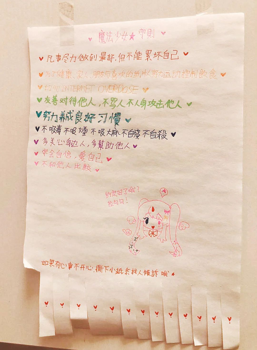 “依奈”生前贴在房间墙上的“魔法少女守则”