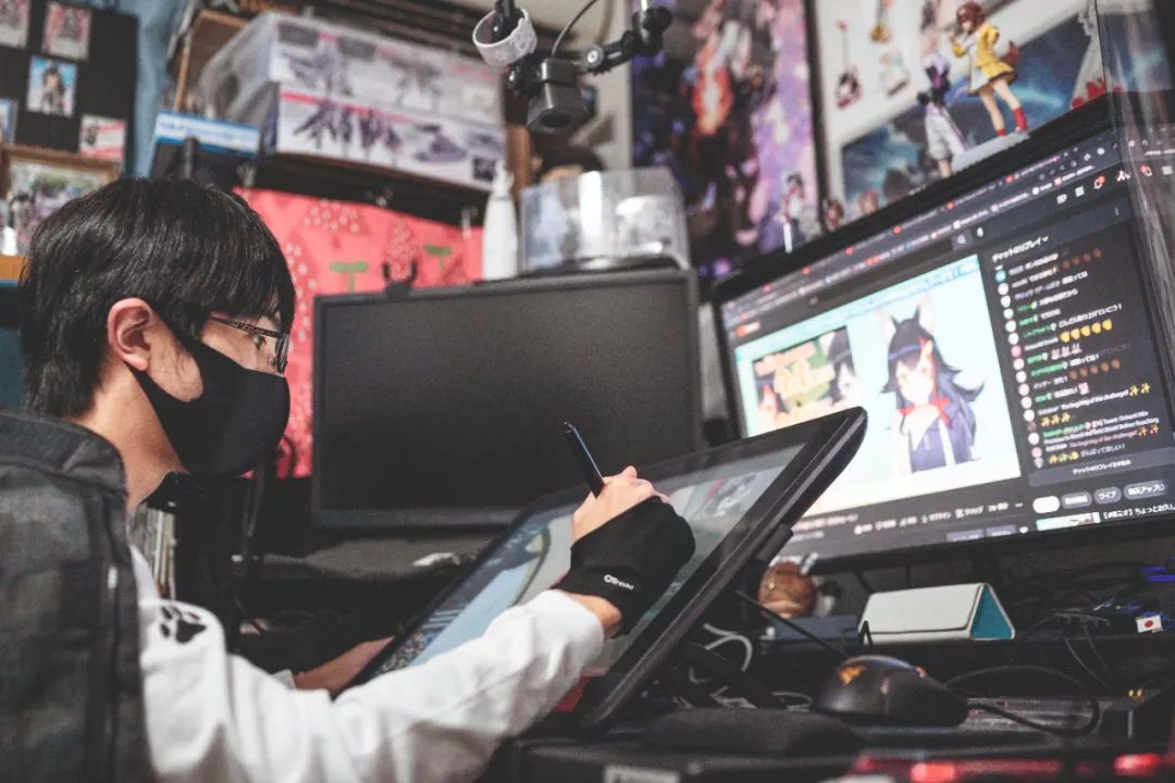 2022年3月12日,日本横滨的青少年Kazumi在家中为其喜爱的虚拟主播Ookami Mio创作插画作品(视觉中国供图)