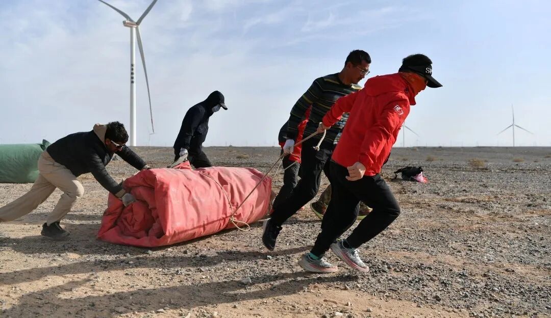 在戈壁中,运输物资、搭建补给站需要克服重重困难