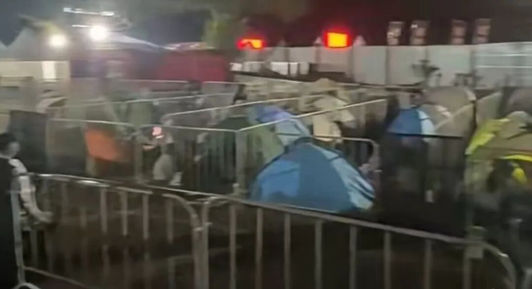 INTIME音乐公园里排队的帐篷(图源:《长江日报》报道截图)