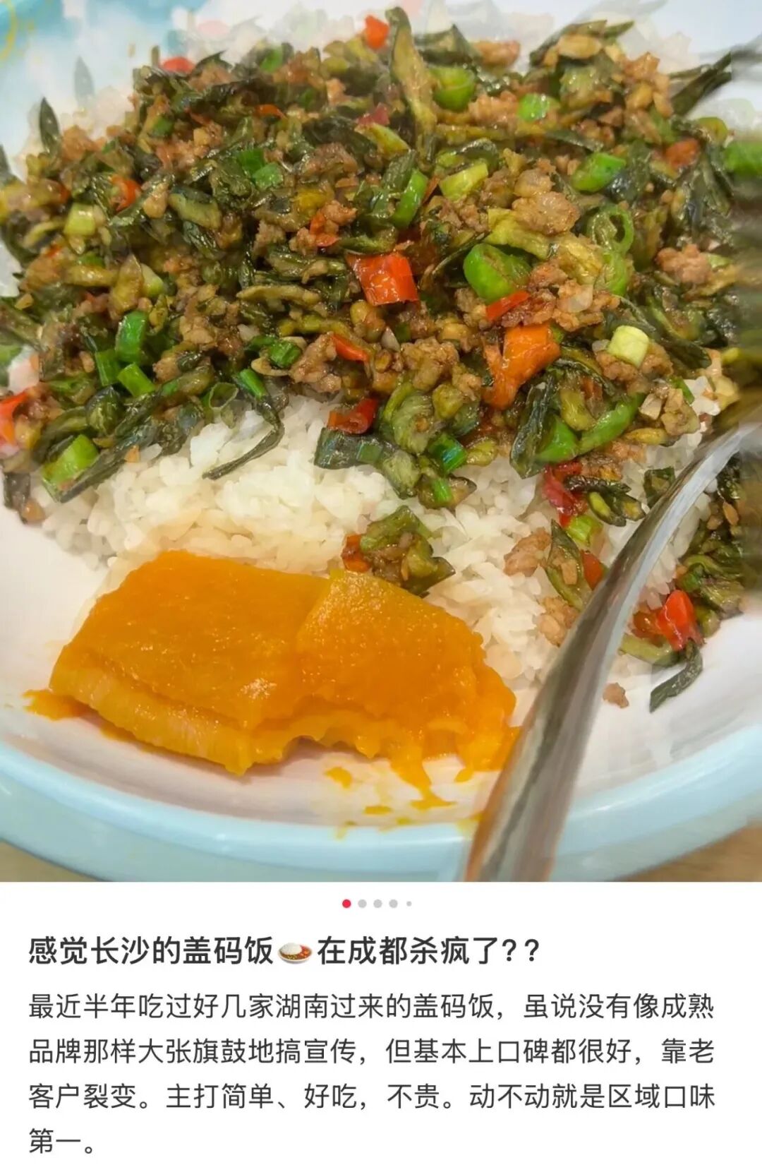 起初,盖码饭只是湖南打工人的乡愁慰藉,如今却成了北上广深打工人的救赎饭。“在外卖这片被预制菜攻占的荒漠里,连麻辣烫都开始用料理包了,你就懂了,十几块钱还能吃到锅气的盖码饭,性价比有多高。”