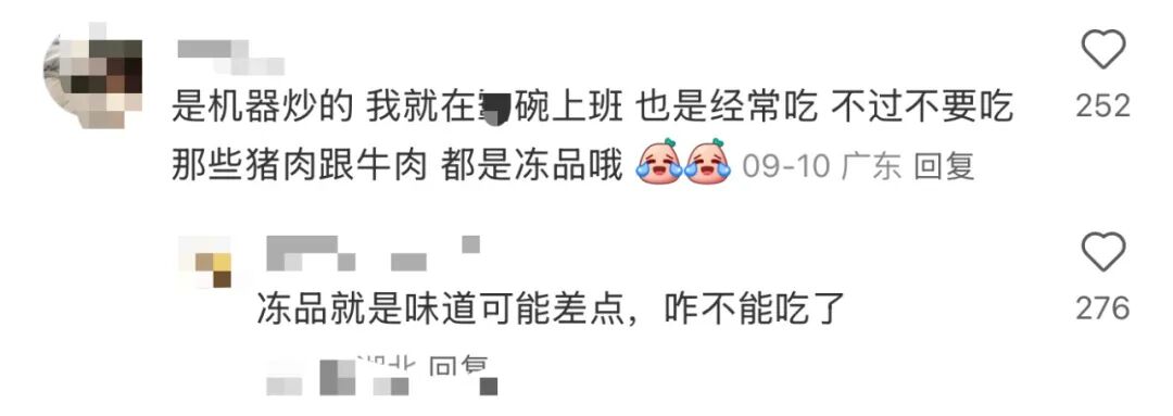 围绕其他外卖的问题是:“它是不是预制菜?”而围绕盖码饭的问题则变成了:“机器人炒的菜,算不算预制菜?”