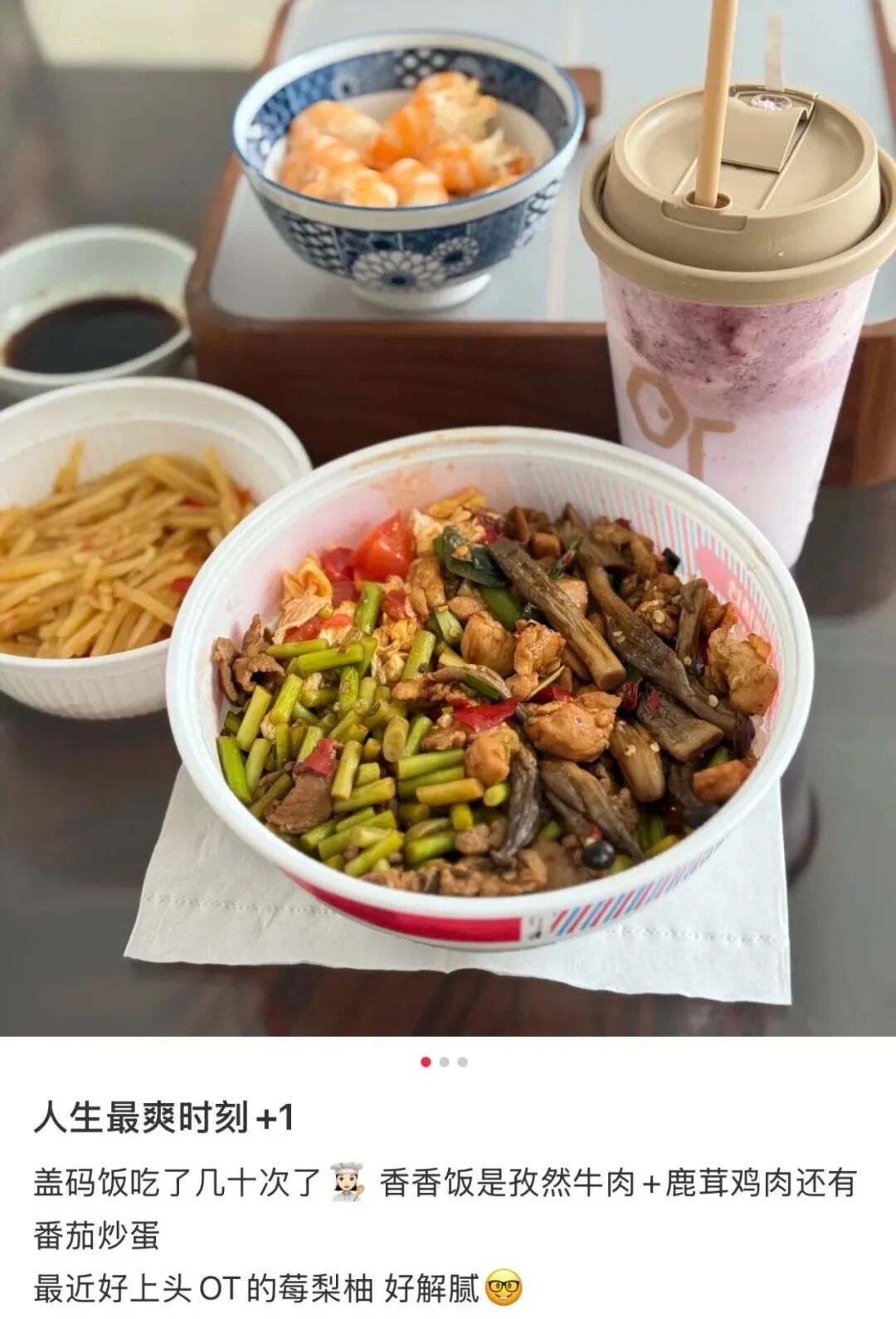 而且,盖码饭成瘾性极高,吃过一次,到了饭点,点单雷达就会自动开启,“人一累,就想到这碗碳水炸弹里开个钟点房小睡一下。”