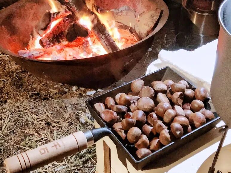 刚下来的怀柔板栗个顶个的浑圆饱满,带着股朴拙实在劲儿。剥的时候只需要往板平的一面划出十字开口,再两手一捏,“啵”地一声,栗粽色的栗子皮就会破开,豁然露出里面嫩生生的果肉。聚众剥栗子,不一会儿就有了一大碗。煮粥下栗子一气呵成,剩下的就只需交由我们身负重任的小煮锅。