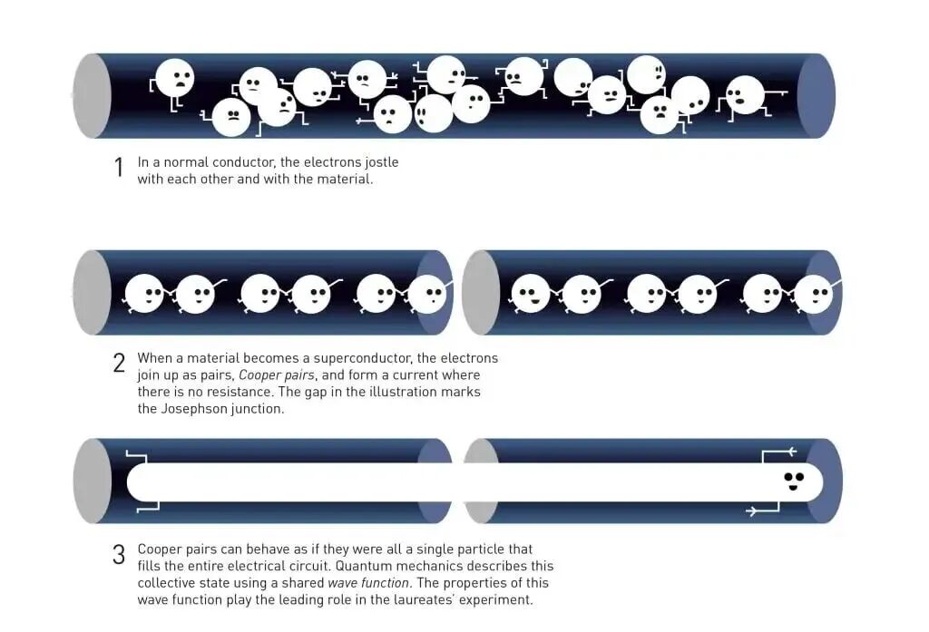 看似违反常识的理论预测激励了实验物理学家。当时40岁出头的约翰·克拉克(John Clarke),很可能邀请过年长自己两岁,却已经获得了诺贝尔奖的约瑟夫森一起在加州大学伯克利分校的实验室里进行研究。克拉克与自己的博士后米歇尔·德沃雷(Michel Devoret)和博士生约翰·马蒂尼斯(John Martinis)终于在1985年取得了决定性的实验突破。他们不会想到,师徒三人会在40年后因为这项工作也获得诺贝尔奖。