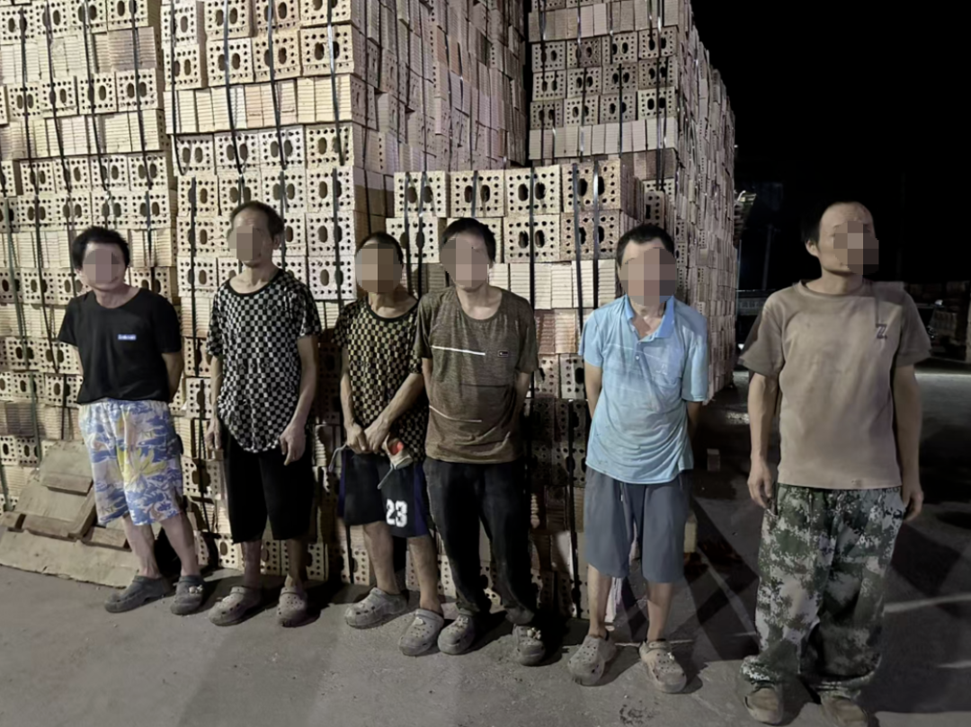看到父亲宿舍的环境,谢静静就又哭了:拥挤狭小的空间里,靠墙摆了六张宽一米左右的床,紧挨着,被子又脏又乱,黑乎乎的,结了块似的。有的床没有床垫,只是一张破了洞的床板,空气里弥漫着一股非常难闻的味道。随后,民警从兴兰建材解救了数名工人。谢静静拍下了他们的照片,全都身材瘦削,有些无措地站着。谢静静说,他们和父亲差不多,都“呆滞,说不清楚话”。警方告诉谢静静,2020年至今,寇聚合先后被转卖过河南省内四家砖厂,先是到了郑州市管城区的一个砖厂(今年6月这家砖厂已经被警方打击关闭),2023年被卖给一个姓蔡的人,最后来到兴兰建材。