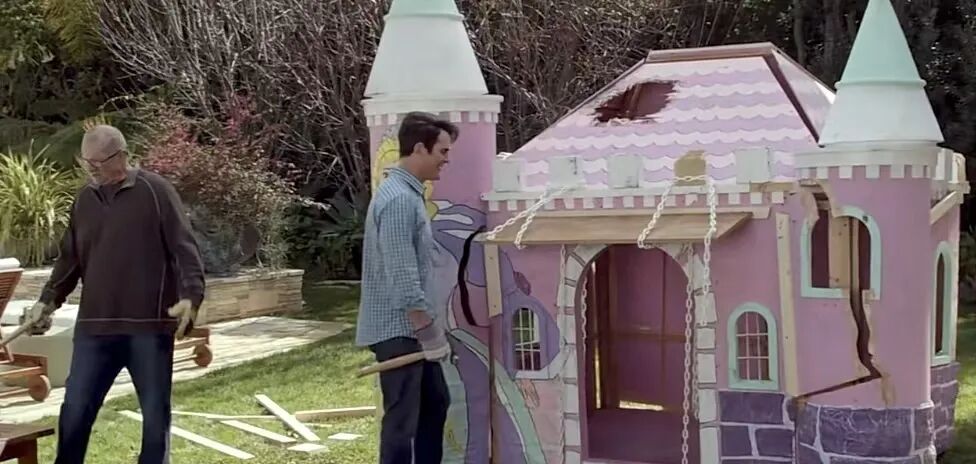 《摩登家庭》里有一幕,米歇尔和卡梅隆想给自己的女儿莉莉搭建一座公主城堡,米歇尔非常兴奋,因为大学时期给舞台剧搭建过几块布景,他觉得自己是一个出色的“建筑工”,打算这次捋起袖子和卡梅隆大干一场。但卡梅隆曾经见识过米歇尔做工的样子——无心之中就会要人命,忘记关电锯开关、拿着钉枪乱发射……出于对米歇尔自尊心和自己婚姻的维护,卡梅隆没有戳穿,而是让“意外”到来的岳父杰一起帮忙,并想方设法分配给米歇尔一些低风险的活儿。