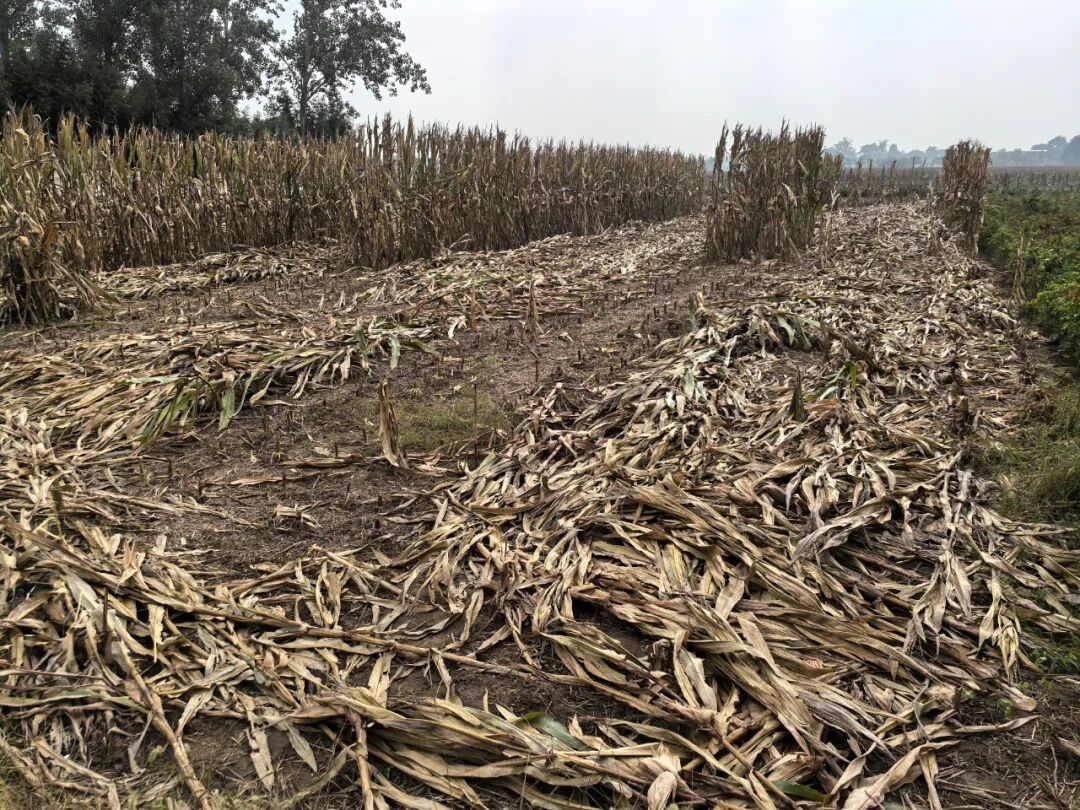 2025年10月14日,河南许昌,连续降雨导致农田潮湿,玉米秸秆无法粉碎(图|视觉中国)