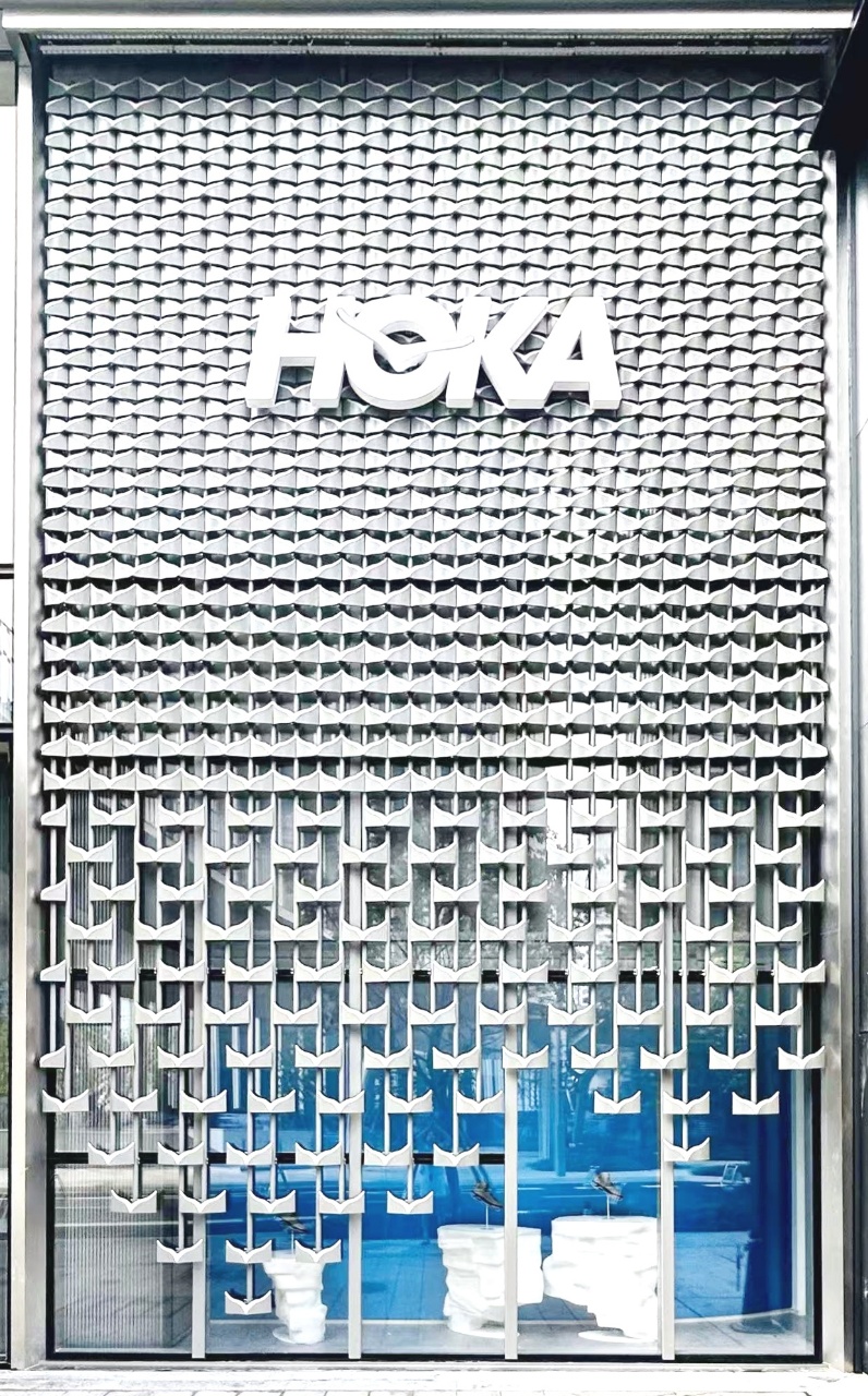 基于对中国高端户外运动市场发展与需求深刻洞察,HOKA锚定华东、华北、西南、华南四大区域的经济高地——上海、北京、成都、深圳,敏锐捕捉四城不断孕育的高端运动消费势能。在西南布局升级后,9月底HOKA华南首家品牌概念店正式开业,为华南地区的城市冒险家打造了近距离感受户外文化的专属据点。其外立面逾 2000 只象征 生而会飞的飞鸟元素由疏致密演绎跑者由各处汇聚的城市轨迹。既延续 HOKA 经典品牌基因,也让山野探索的浪漫与深圳这座沿海城市的活力、创新精神碰撞出独特火花