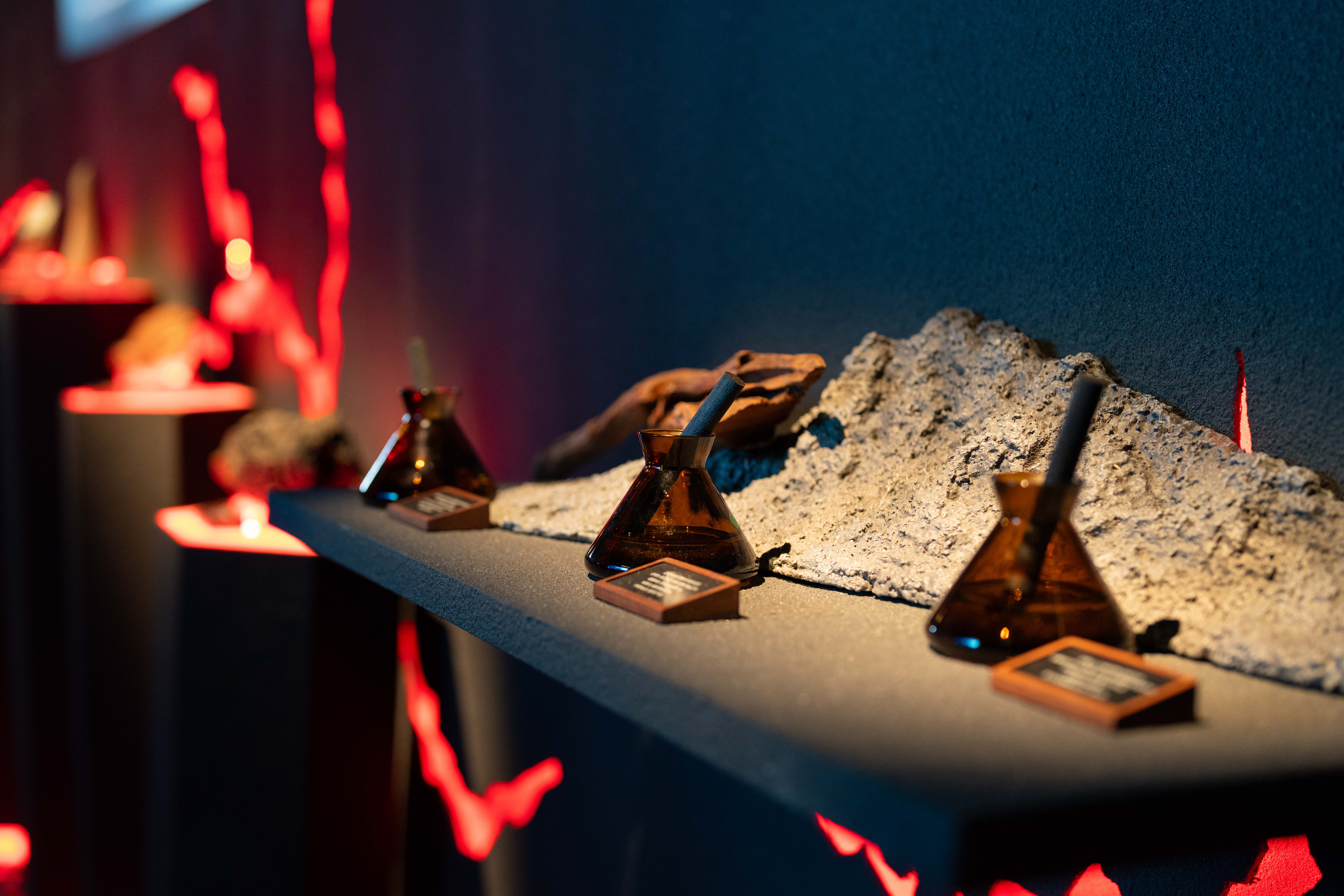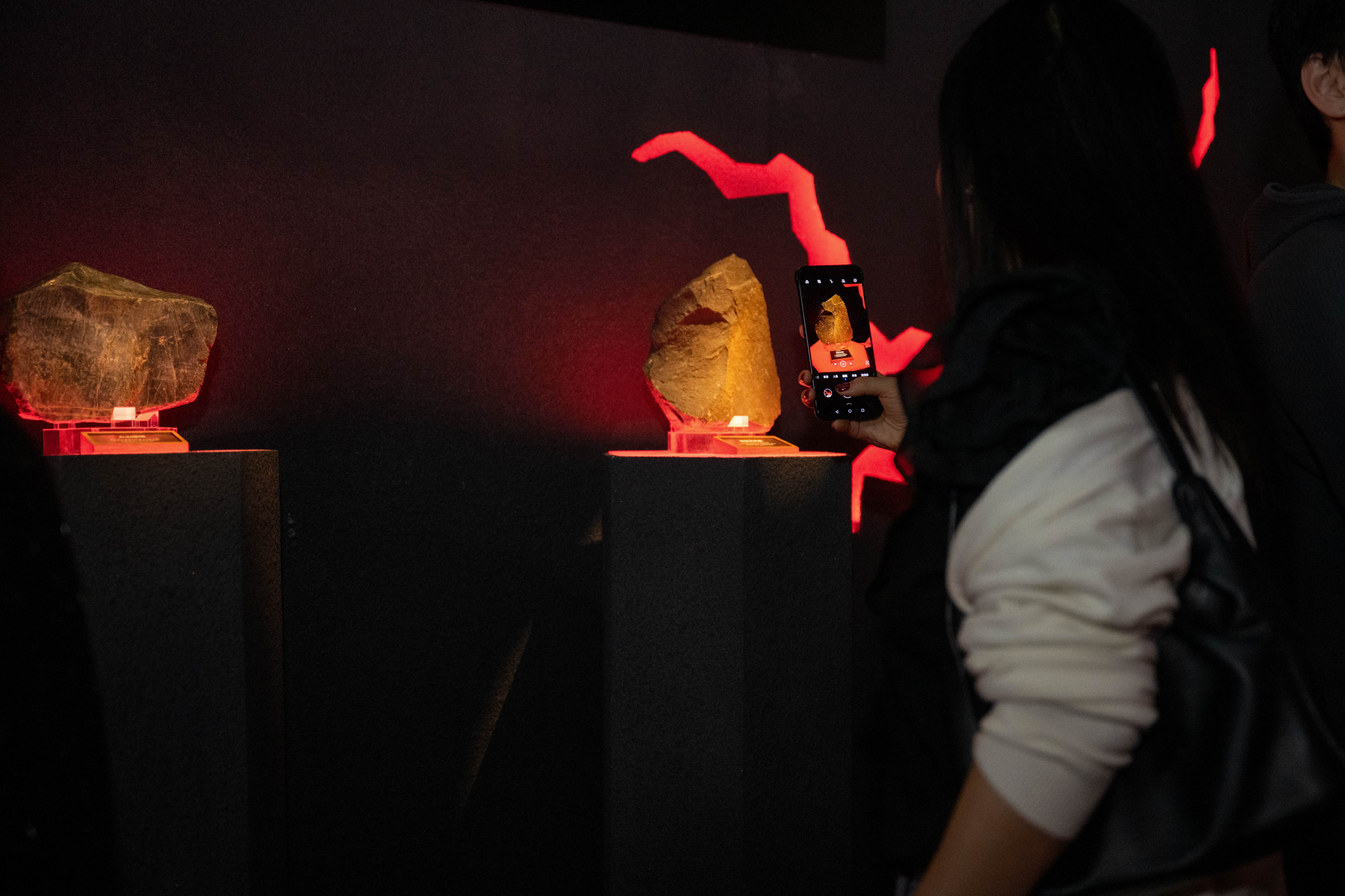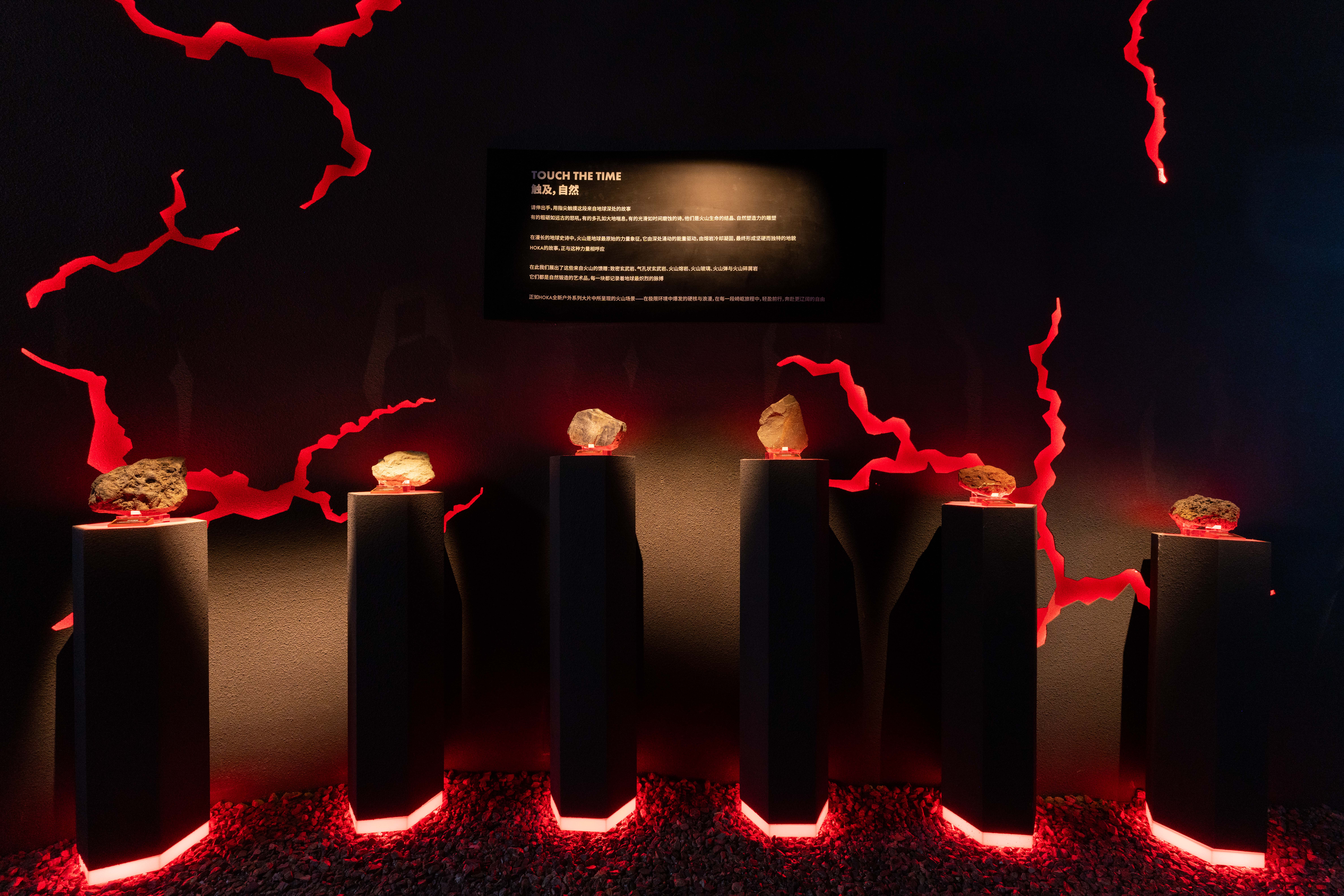 这座藏于「城野穿行」快闪空间内的“自然「柏」物馆”被岩壁包围,通过墙面红色裂痕所带来的火山岩浆视效及收集到的自然符号,以不断向上的硬核态度,还原真实火山环境,怀揣着对自然的敬畏之心,倾力呈现一场自然探索之旅。