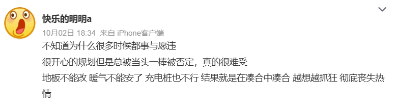 “买了车,却没法在自家车位上充电,还得顶风冒雪去外面排共享充电桩,这和没买车有什么区别?”