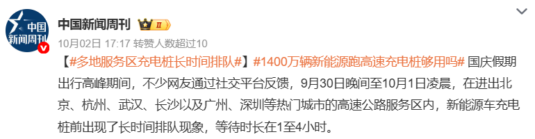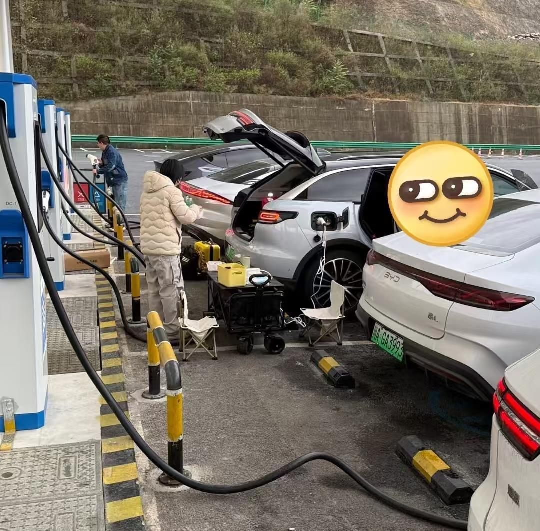 “上过高速服务区,就知道油车和电车的差别了,一边随时走人,一边排队半天,等电的时候,有的人都吃上火锅了,好家伙,还真是‘生活在路上’。”
