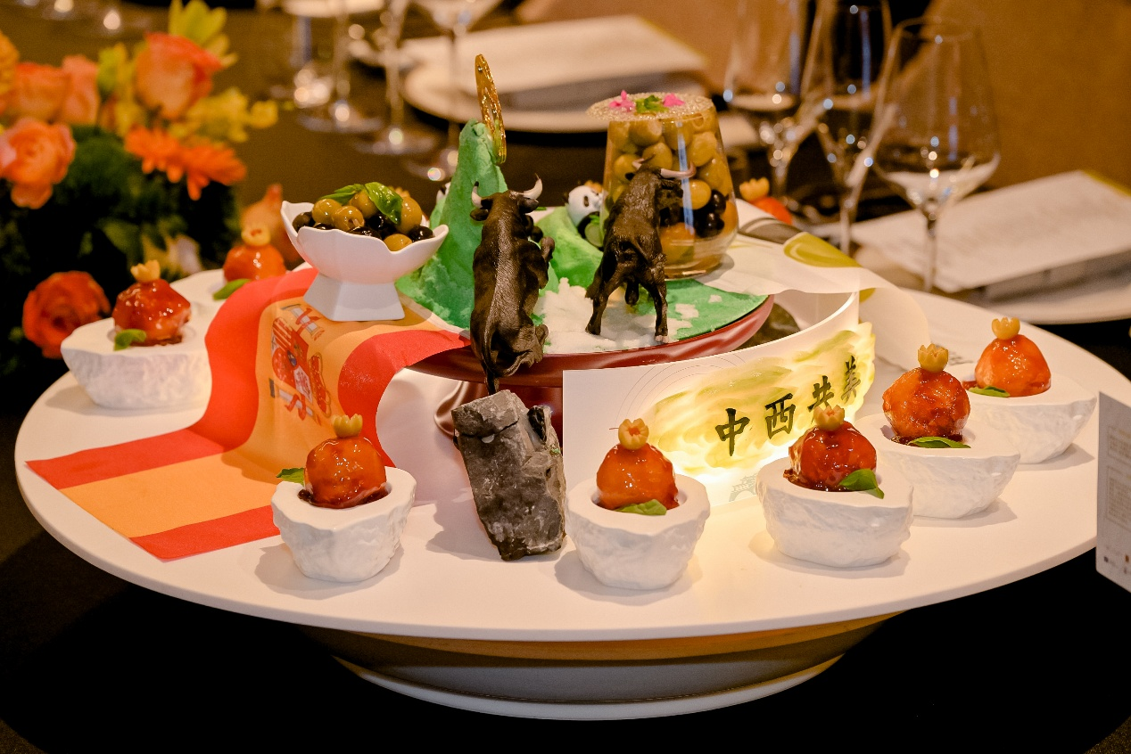 在重头戏文化菜品中,主厨通过华夏一京(橄榄风味明虾球)、中西同心(水晶橄榄古老肉)、福禄同攸(鲍参橄榄皆是福)、香山万秋(橄榄板栗雪花牛)与御梨霜秋(橄榄芝士焗蟹斗)五道大菜,共同勾勒出一幅东西方味觉交融的画卷。