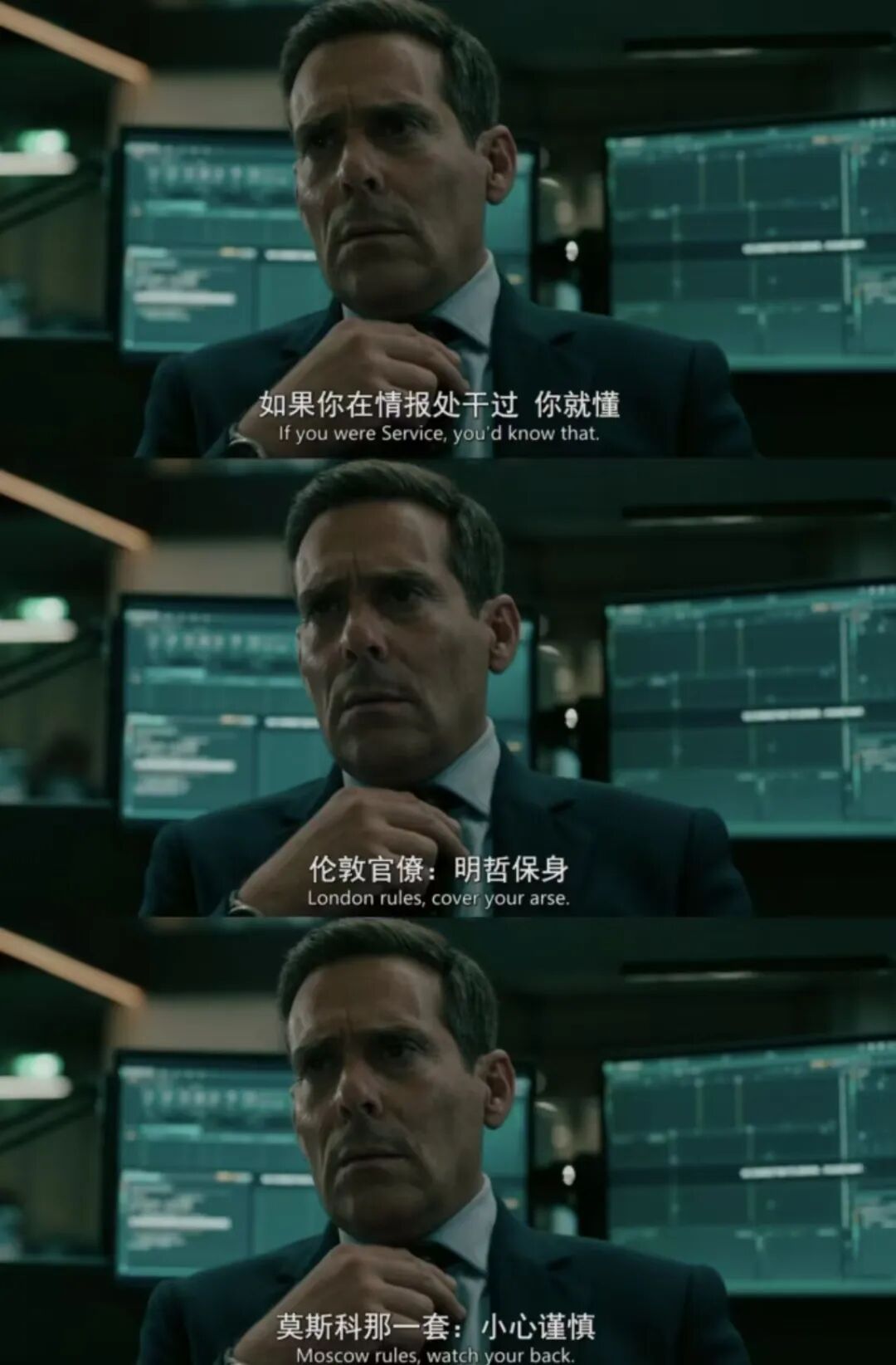 前面提过,原著作者本身并非勒卡雷那样真正谍报系统出身的人,他写的本来就是披着谍战外衣的职场剧。在第五季里,这一点变得尤其明显,谍战可以走个过场,但是职场讽刺必须给足。