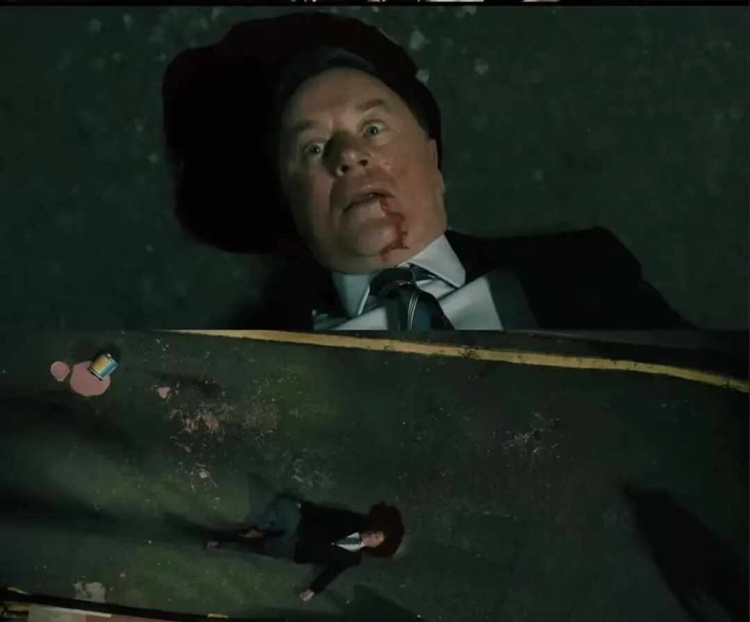 剧情随后沿着“去稳法”的余下步骤走。比如“瘫痪交通”就是在加油车里动手脚,让车子在路上起火,而“控制媒体”则是用毒品引诱流浪汉去动物园炸企鹅。这里面有一种很古早的“本格”趣味,就像阿婆在《无人生还》里用民谣预告凶杀,答案明明已经半遮半掩地告诉你了,但这题你却还是解不出来——谁会想到去炸企鹅?