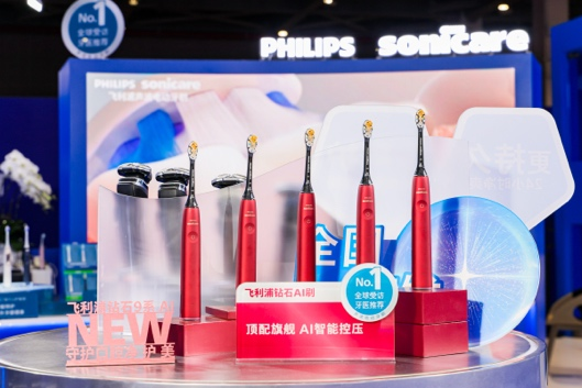 口腔净护健康科技解决方案:聚焦飞利浦Sonicare 33年专研声波洁牙科技,多效电动牙刷及冲牙器全面覆盖基础清洁、护龈护齿、亮白美牙及AI智能全效守护,焕活口腔净·护·美。进博首秀的全新勃艮第红钻石AI电动牙刷搭载SenseIQ智能感应科技,无死角精准感应,一键开启全效守护。