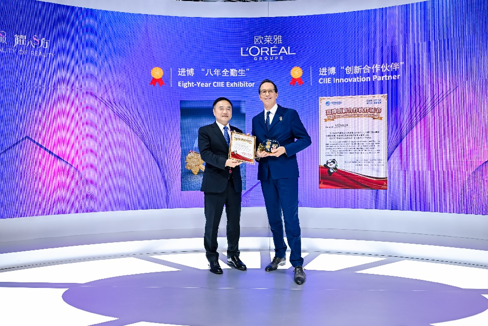 进博局向欧莱雅颁发“八年全勤生”奖牌和“创新合作伙伴”证书