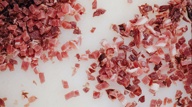 作为云腿的原产地,尤其宣威攀枝嘎村,山高谷深,常年云雾缭绕,全年湿度都保持在90%以上,堪称“云腿”的天然发酵室。宣威的云腿饼好吃的秘密就在这里——坚持只用云贵高原海拔2200米宣威攀枝嘎村里,豢养两年以上的乌蒙猪做成的宣威火腿。这样的火腿肌红脂白、香浓味鲜,肉质也更加紧实。