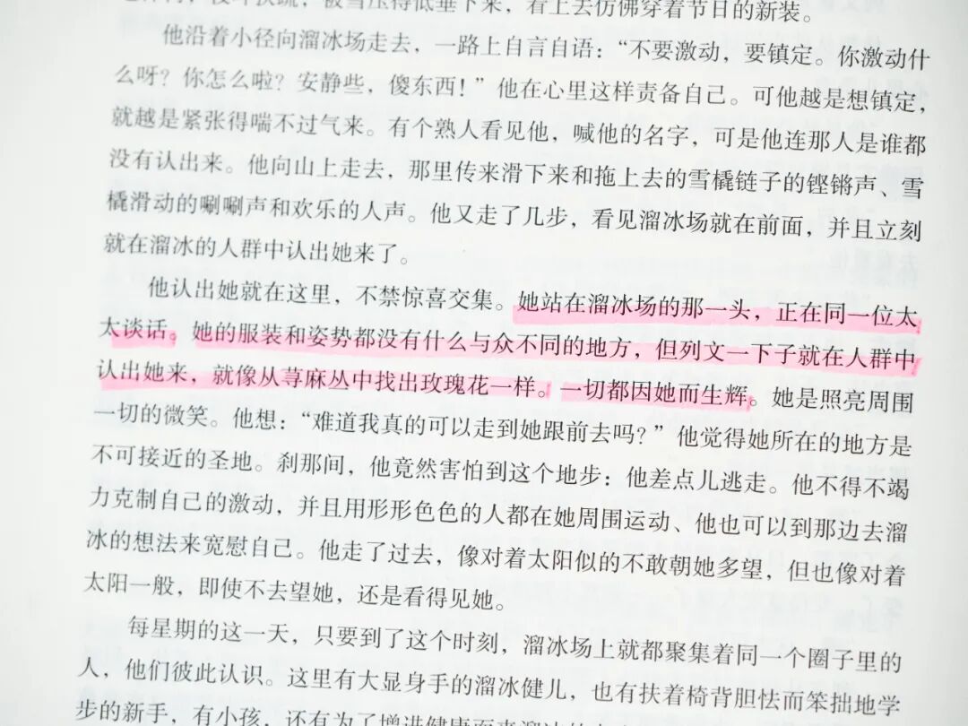 当“我”还是一个对爱情充满浪漫幻想的少女时, 读到安娜与伏伦斯基初遇的描写: