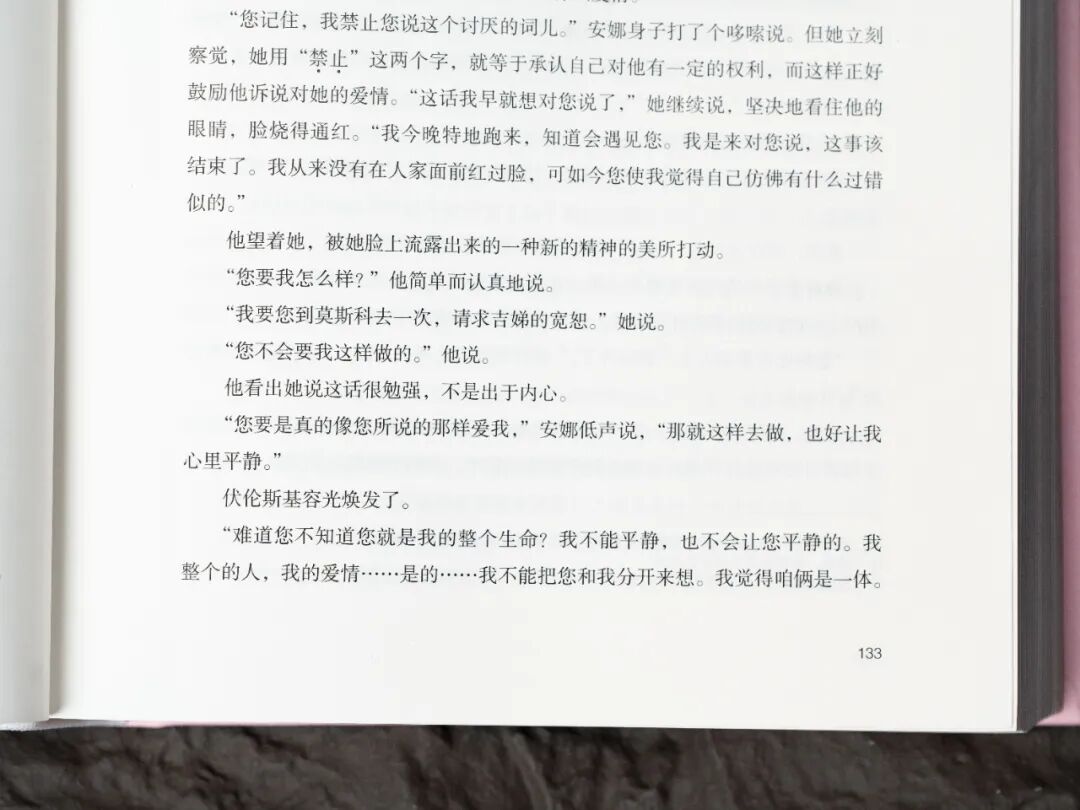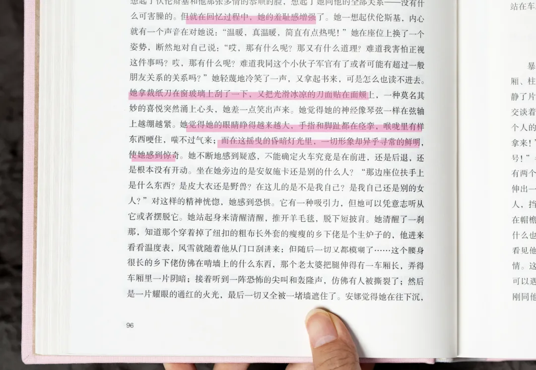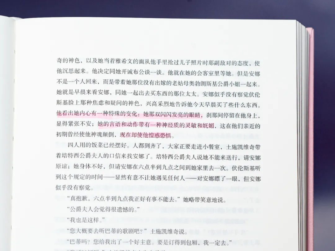 浅粉色布艺封面,是安娜炽热内心的纯真映照。烫金线条则是她无法挣脱的现实枷锁。