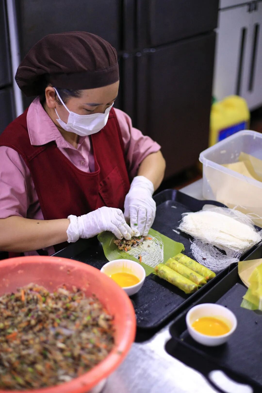 对于调味的重视能够在东南亚范围内,把越南口味区分出来。“我们店也做冬阴功汤,但是跟泰国冬阴功汤很不一样。”林荣媛告诉我,泰国冬阴功汤稠,味道既甜又辣,“我们不用椰浆,会把香茅草等其他配料充分捶碎之后再下锅煮,这是越南海防的做法,越南的冬阴功汤因此偏酸、偏清淡”。