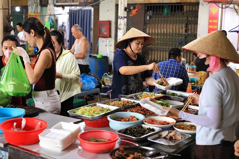 一顿色彩绚烂的拼盘与鱼露的组合餐,呈现出越南菜的重要一面。“越南无论是主食、肉还是蔬菜,跟中国比,做法都是很简单的。”禧越餐厅老板娘苏春余对我说道。越南蔬菜的家常做法大多是蘸料生吃,或者只用水煮,“最有代表性的是越南煮空心菜,在水里烫一下蘸着鱼露一起吃。煮菜的水里放一点柠檬汁,一点盐,这就又变成了一道汤”。海鲜做法也是类似,“比如酸辣鱿鱼,把红鱿烫好做凉拌菜。蒜蓉、香茅草和柠檬,就这三样,调出一个秘制酱料,拿鱿鱼蘸着吃”。肉做起来也颇为简单,“越南有道鱼露炒鸡的家常菜,做法简直简约到极致,把鸡块放进锅里爆炒,只加酸甜酱和鱼露。”苏春余说道。