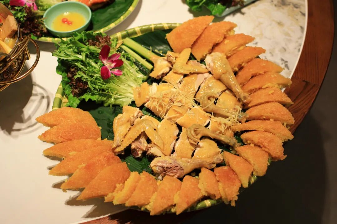 东兴的越式炸鸡,原料上跟越南不一样。东兴的厨师告诉我:“他们把中国的鸡叫工业鸡,越南的鸡是散养居多。”原料品质相比越南有不足,但东兴的炸鸡店也有自己的特色之处。东兴有家名叫孟获炸鲜鸡的店,老板名叫郑金煌,他是本地人,以前曾经在防城港当过厨师,后来回了家,想自己开家店,就托芒街的亲戚帮忙推荐越南饮食,想开一家有差异化的餐厅。“到处去品尝,我发现做炸鸡挺不错的。”郑金煌告诉我,越南炸鸡只需要选料新鲜,经过简单清理和一点点的腌制就会很好吃,“用香茅草和干葱腌制几分钟,主要是为了去腥”。他选择三斤大小的本地小土鸡,“再大肉过多,再小肉就柴”,下油锅前要先煎一遍香茅草,“只有油里有了香茅草的味道,才是越南炸鸡”。