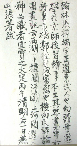先说画家的故事。目前我们大概知道,《清明上河图》的作者是北宋时期、徽宗朝的画院画家张择端。我们现在考证作者的唯一证据,是画后面最早的题跋(题跋指的是书写在书画作品前后,用于说明、鉴赏或记录流传经过的文字,是鉴定和研究的重要依据)。写跋语的人是金代监管御府书画的朝臣张著,他题写了八十五字,说张择端是翰林,也就是御用文人,他字正道,东武人(今山东诸城),自幼读书,游学京师后,开始学习绘画,他擅长画界画,尤其是画舟车、城邑、道路等。画坛也有鄙视链,当时人物画、风景画、花鸟画是正宗,所以张择端的风格是“别成家数”,也就是与众不同。