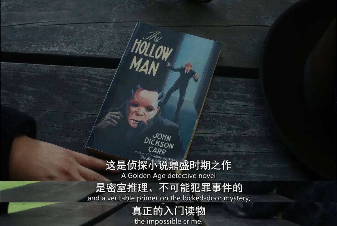 电影里对卡尔的致敬非常直白,卡尔的名作《三口棺材》不仅被布兰克拿来狠狠安利一番,并借鉴里面的“密室讲义”来破解密室,还直接成了凶手构思不可能犯罪的灵感来源。