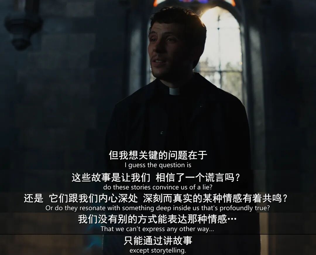 贾德和布兰克的对比更有意思。当布兰克嘲讽信仰是虚假的故事时,贾德很干脆地承认了这点,但他之后的回应也同样引人沉思:故事是虚假的,但故事传达的内容是真实的。