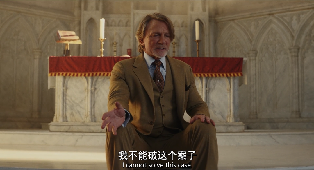 但与此同时,电影也借由贾德神父这个角色展现了信仰有价值的一面。贾德堪称整部电影最大的亮点,以往系列中除了布兰克外的角色基本都是制造冲突反转、提供线索的工具人,而这次的贾德塑造得极为丰满立体,在电影中的高光甚至超过了布兰克。