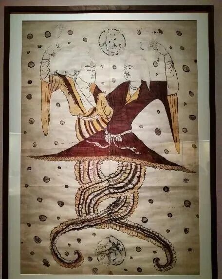 中国国家博物馆馆藏唐代墓葬出土的伏羲女娲绢画,呈现了伏羲、女娲人首蛇身交尾形象,是中国神话人物形象在中国传统文化中的实物见证。