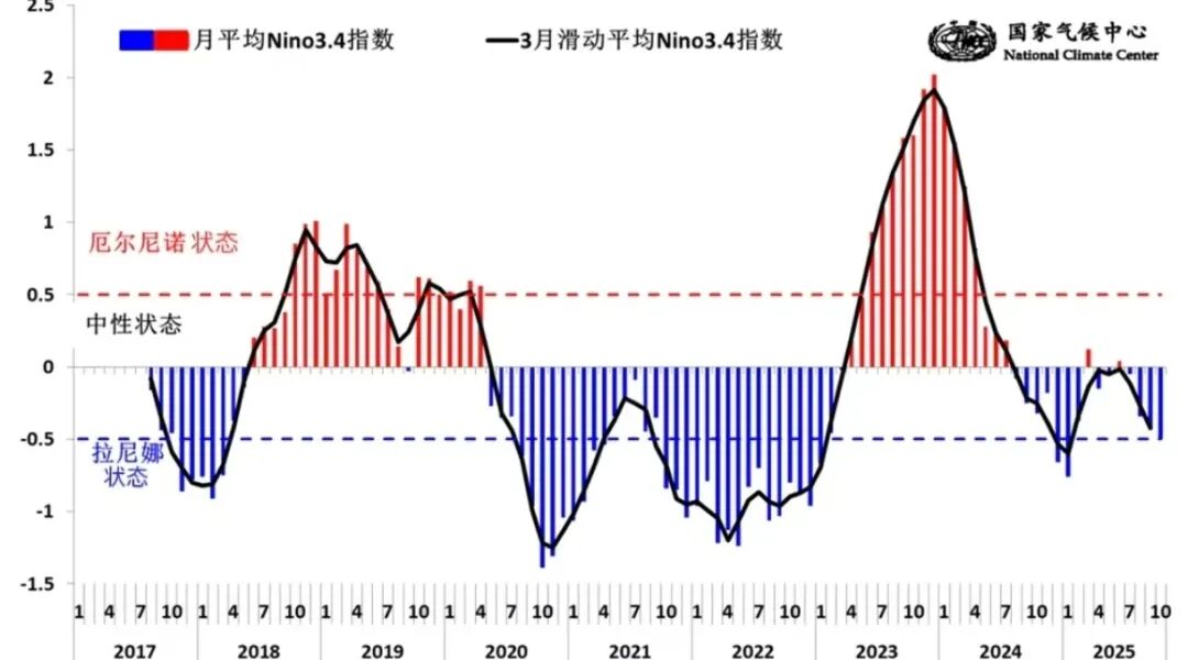 显然,据国家气象监测中心的通报,今年10月,赤道中东太平洋已正式进入拉尼娜状态,截至12月15日,这一状态仍在持续。世界气象组织(WMO)的通报进一步佐证了这一结论:截至2025年11月中旬,海洋和大气指标已显示出拉尼娜临界条件,2025年12月至2026年2月期间,出现弱拉尼娜现象的可能性为55%。多项权威监测数据共同确认,2025年末我国正处于拉尼娜状态的影响之下。