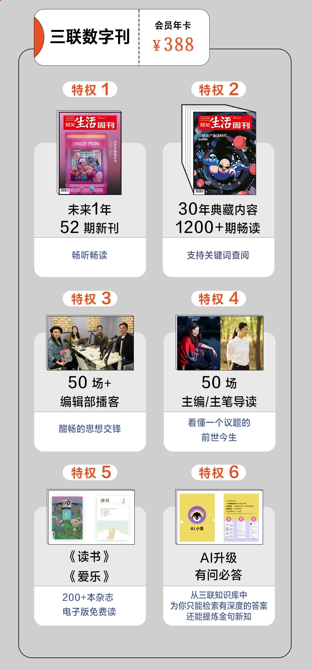 ①三联数字刊13个月年卡,日常价388元,加送价值45元;