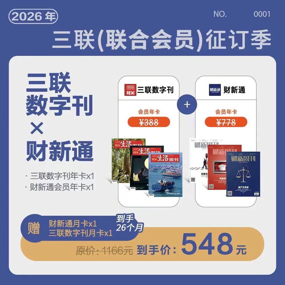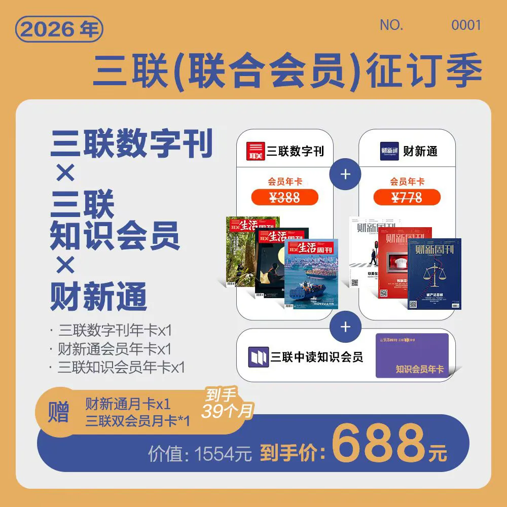 年末,三联和财新通再次携手,推出联名会员年卡。只需要一份资讯价格,你就可以获得两份优质内容。为了回馈大家的支持,我们还推出了买1得4的活动,现在购买,加送1个月的财新通会员和1个月的数字刊会员。