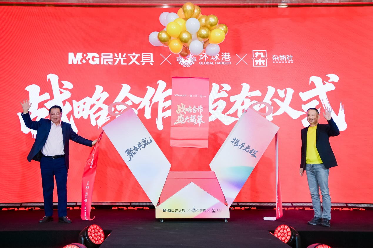晨光也走在了文具文创行业引领潮玩时尚的最前端。1月3日,在战略合作发布仪式上,随着晨光文具总裁陈湖雄和全国政协委员、全国工商联常委、月星集团董事局主席丁佐宏共同开启象征未来与共创的巨型“星光礼盒”,气球条幅上出现“战略合作、盛大揭幕”字样,这也标志着晨光正式与上海商业顶流标杆环球港开启了战略合作。