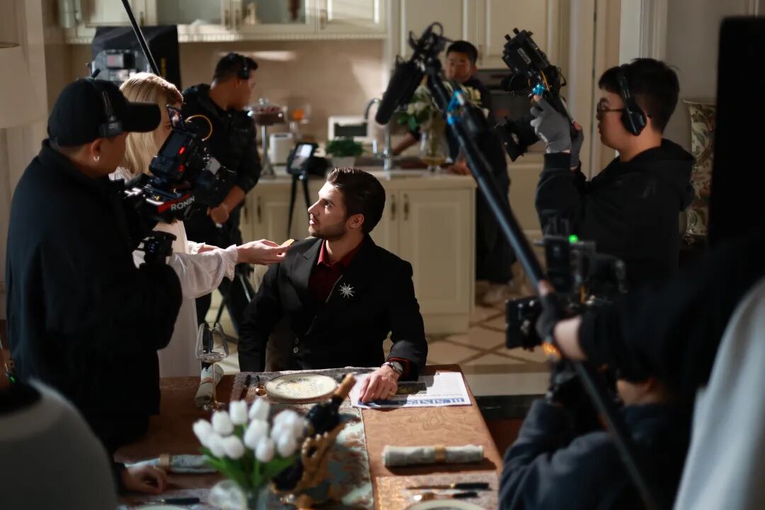 也是在和Neven的交流中,Liam逐渐确认了短剧拍摄中特有的一种人际关系。“按理说,这么高强度、这么赶的进度,大家应该更容易暴躁和紧张才对。但我反而觉得,正是这六到八天的密集投入,把所有人拉得更近了。”这和他此前的经历截然不同,“在传统影视行业里,你很难随便接近所谓的‘大明星’,不可能直接走过去说‘嗨’,但在短剧里,更像是一种‘哦,我们都彼此认识’的状态。”
