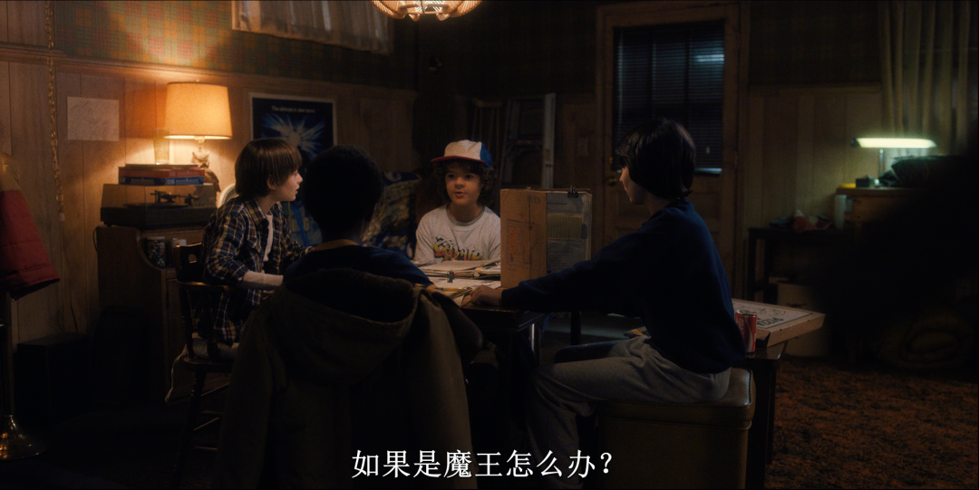 除了这些80年代的流行文化外,达菲兄弟还加入了许多对当时亚文化的描写,让整部剧弥漫着浓郁的“宅味”。第一季的开篇就是主角团在地下室里玩《龙与地下城》的跑团桌游,这在当时相当于如今的电子游戏,在许多家长眼里属于毒害青少年心智的玩意儿。