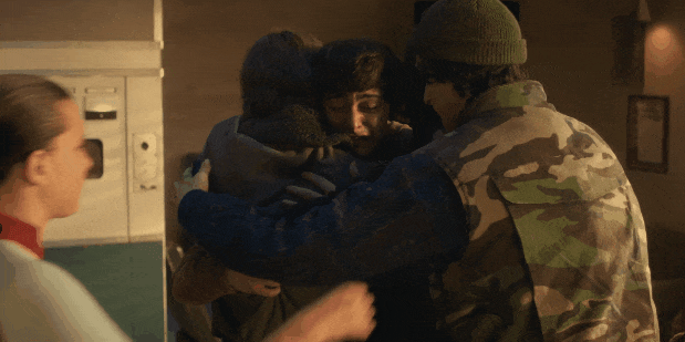 而达菲兄弟满足了我的这份愿望,以三场充满仪式感、情感浓度极高的告别把每个角色的去向交待得清清楚楚。少年组疯狂欢闹的毕业典礼、青年组展望未来的天台酒会,还有终于修成正果的中年组,每一幕都看得人通体舒畅、心满意足。