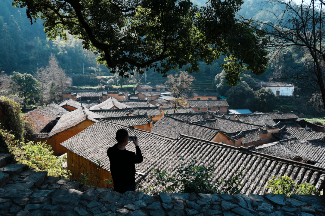 这里大多数村落都有几百年的历史。陈家铺村位于四都乡,海拔约 850 米,坐落在三座绵延山冈上,常年有三分之一的时间被云雾覆盖,梯田、竹林、古树和山峦把它包住。杨家堂村距离县城更近一些,是典型的阶梯式古村落,村内宗祠、庙宇与古民居多建于清代乾隆至道光年间,站在村西的小山坡远望,三十余幢黄墙青瓦、马头墙高耸的建筑被阳光照出金色光辉。松庄村同样有六百多年历史,一条小溪呈 S 形穿过村庄,小桥流水与群山环抱让古典中国的美变得具体——木结构夯土房、祠堂、社庙、风水树、百年石拱桥、千年古步道,这些元素在村里并置存在。