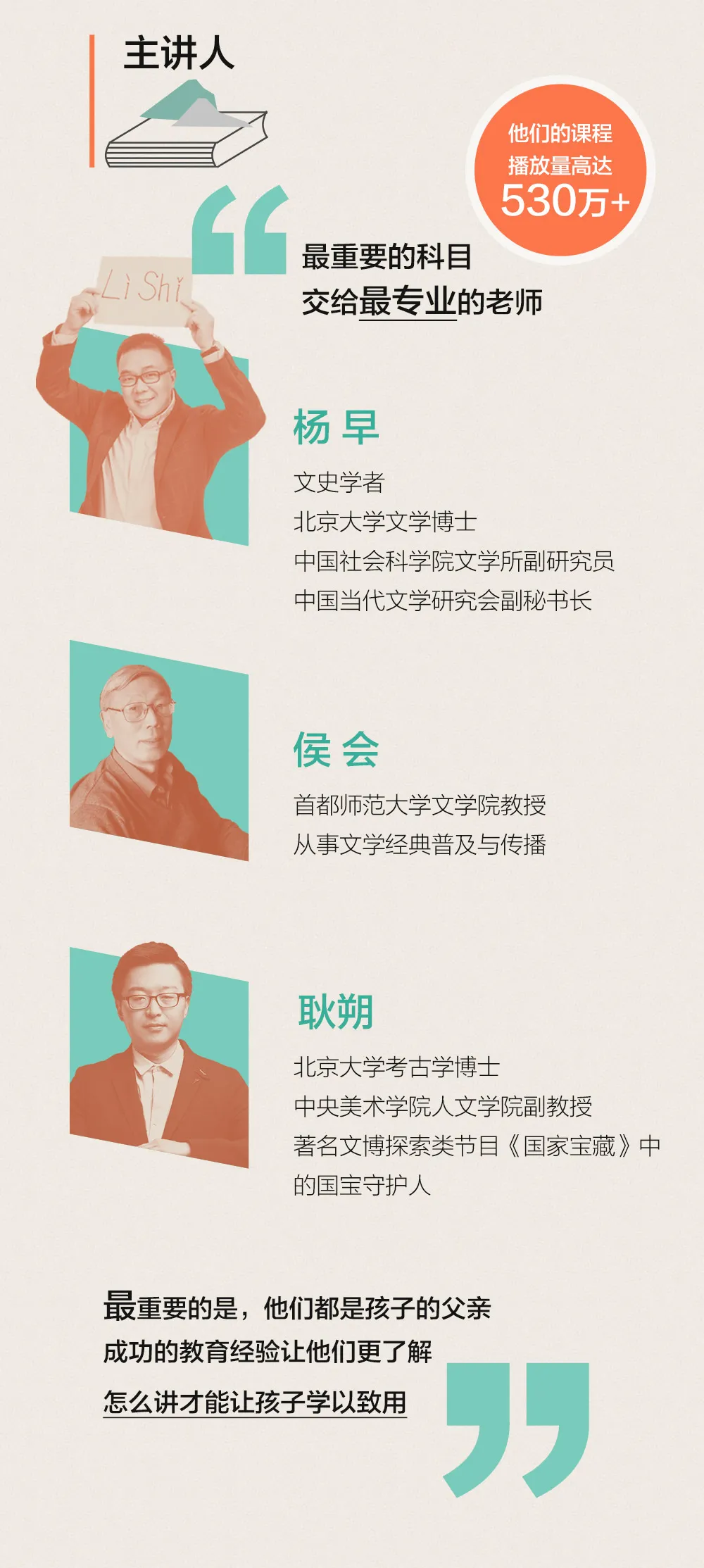 三位高校学者坐镇,亲自领孩子打开知识大门。
