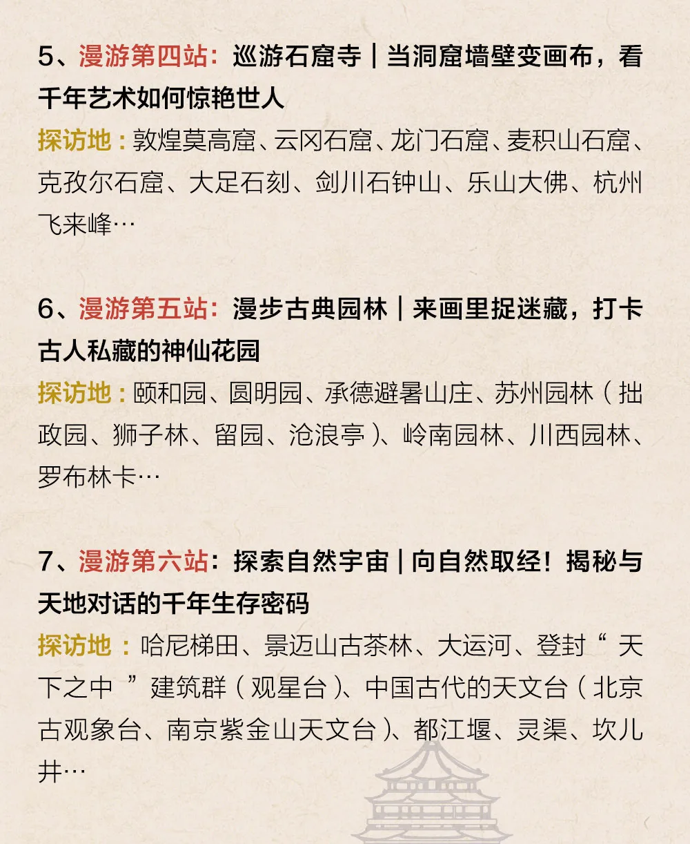 还会去到像敦煌、云冈这样的著名石窟,诗情画意的苏州园林,各式各样的古典民居当中,在艺术和自然当中接受文化与美的熏陶。
