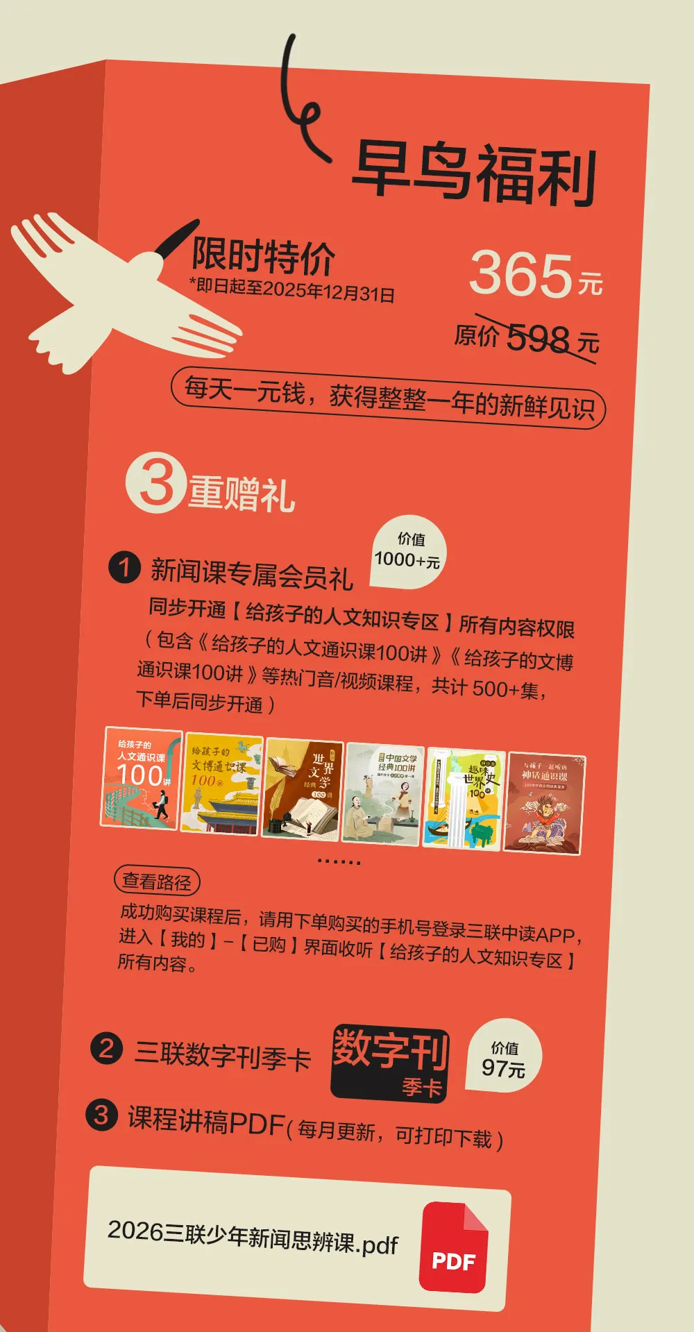 在新闻领域深耕三十年,我们发现,想要养成好的思维习惯,新闻是非常好的入口。于是,我们重磅推出了专为9-15 岁青少年打造的《2026三联少年新闻思辨课》。用365天不断更的新闻内容,引导少年们主动探索问题、找到独特视角,学会表达与创造。