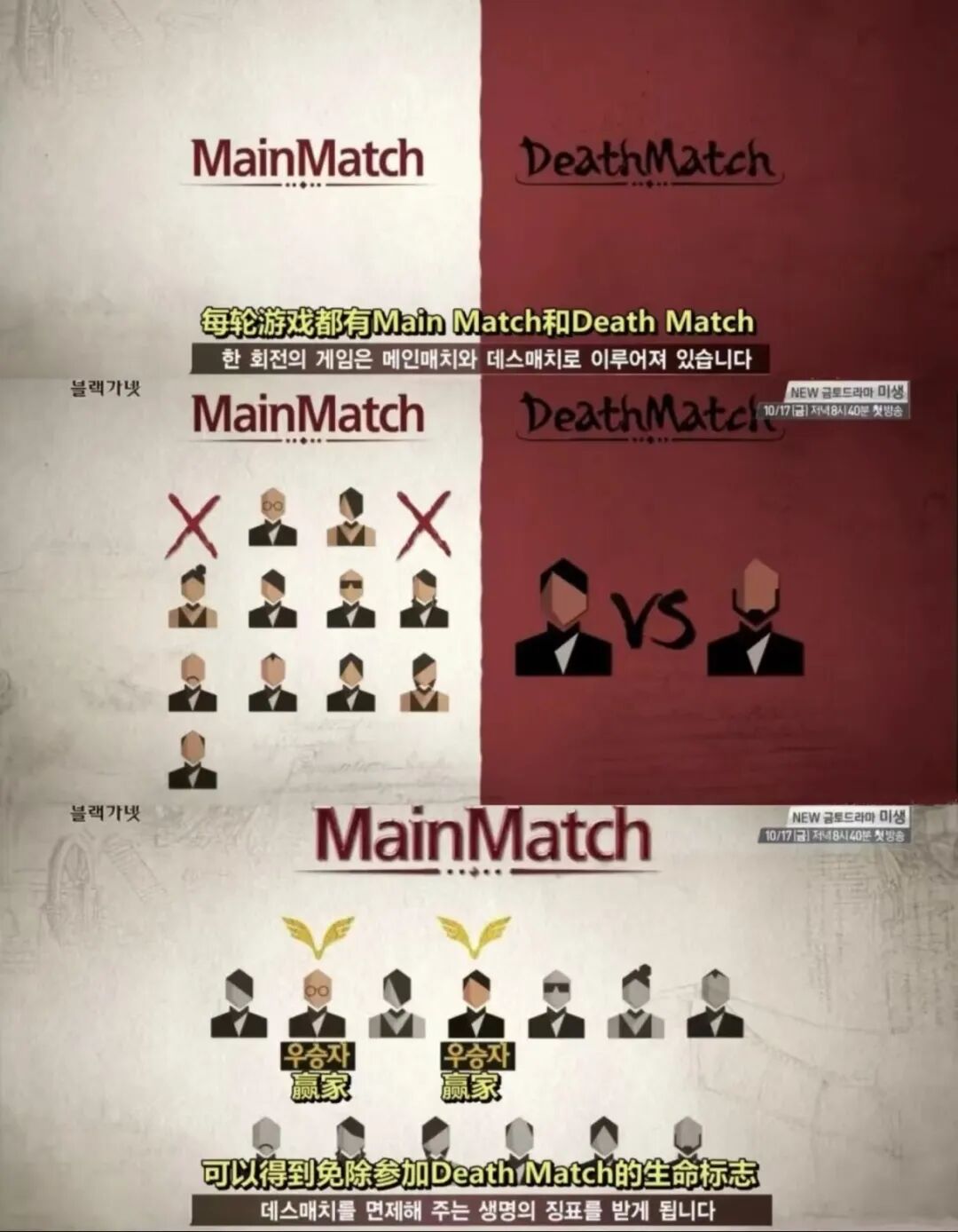 这类脑综的代表,可以追溯到2013年韩国tvN电视台推出的《天才:游戏的法则》(简称《游法》)。节目每期设置一个原创游戏,玩家需要在理解规则的基础上,通过计算、策略、结盟、背叛,争取生存到最后,游戏的难度直线上升。