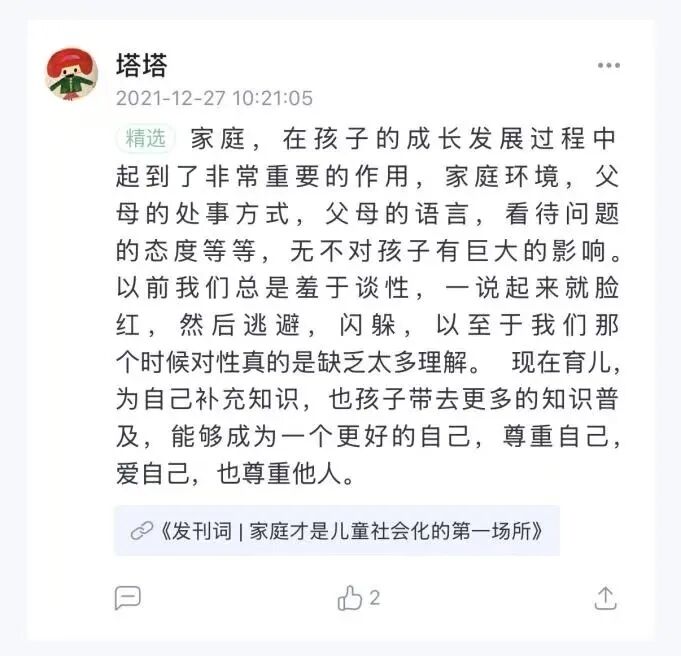 幸好,那之前我就在三联中读里听过刘文利教授《给父母的儿童性教育指南》。我试着照课里教的,找了个机会,很自然地跟女儿说:“其实乳房发育这事儿特别正常,这说明你的身体很健康,跟春天树要长出枝芽一样,这是值得高兴和骄傲的事情。”