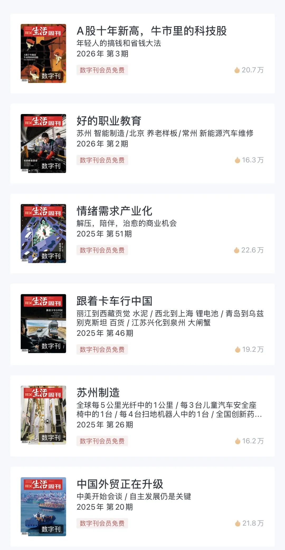 数字刊会员,拿来享用《三联生活周刊》《爱乐》《读书》《少年新知·有声版》,定期更新,随时回溯,全家人都能找到喜欢又合适的内容。