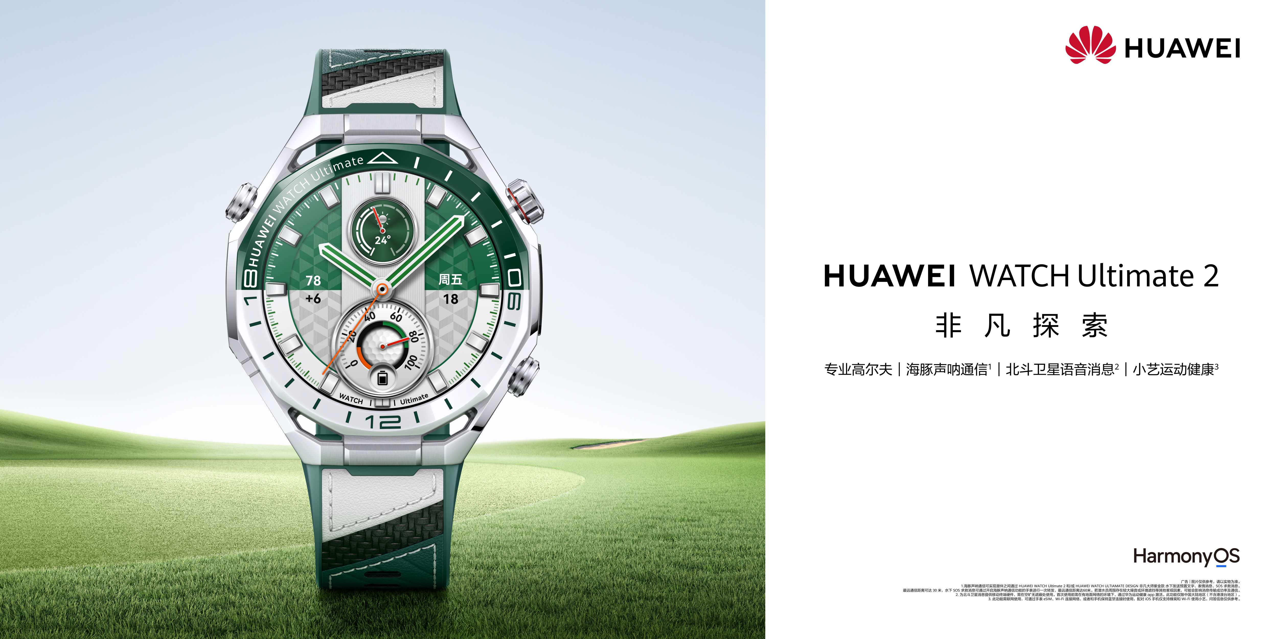 2026年3月23日华为春季全场景新品发布会上,华为WATCH Ultimate 2 非凡探索 旷野绿正式亮相,这款聚焦高端高尔夫场景的全能旗舰腕表,凭借专业的高尔夫功能、极致的户外探险守护、高端的材质工艺及全面的智慧健康体验,精准击中精英人士核心需求,成为高端高尔夫智能手表选购市场的优选。