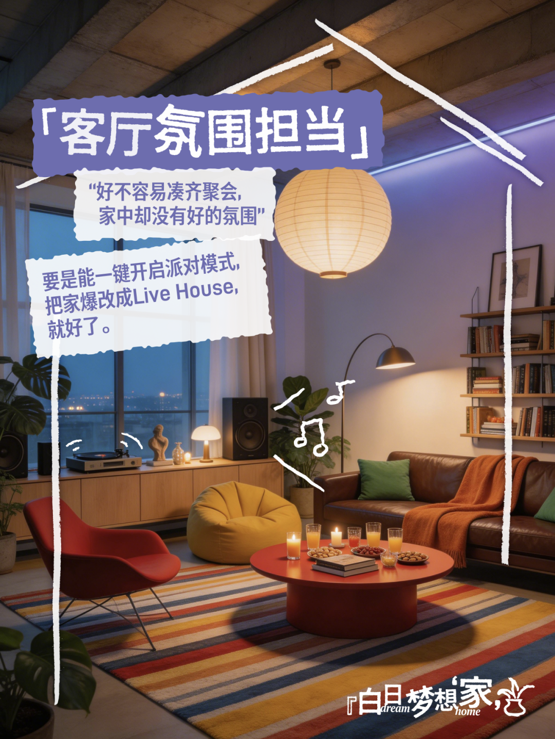以前这种“掌控感”其实很脆弱。尽管零食、酒水的准备早已轻车熟路,但是如果灯光调不好、氛围起不来,朋友们难免要寒暄一会儿才能进入状态,“一切就会变得有点尴尬”。